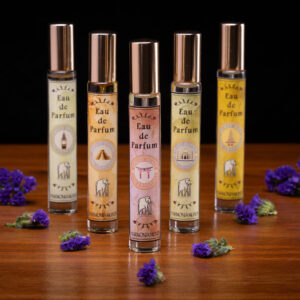 Fina danza de granos torrados de café egipcio, cortados con ámbar intenso, rociados con mínimas gotas de loto azul.